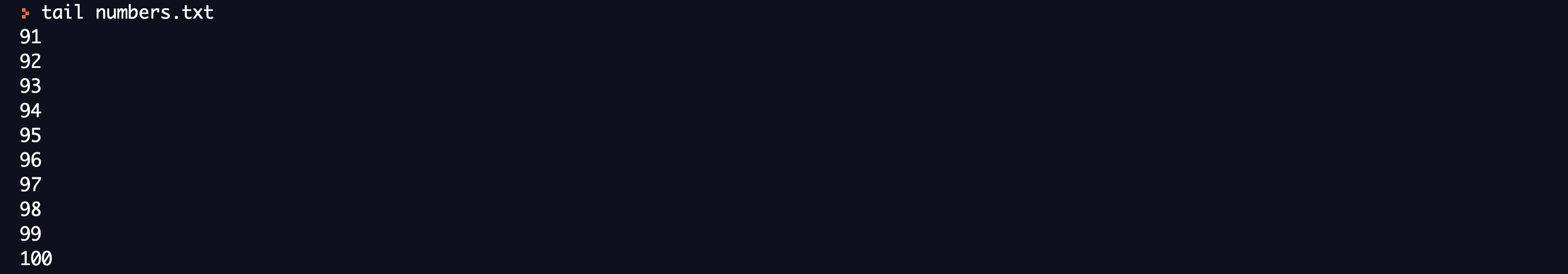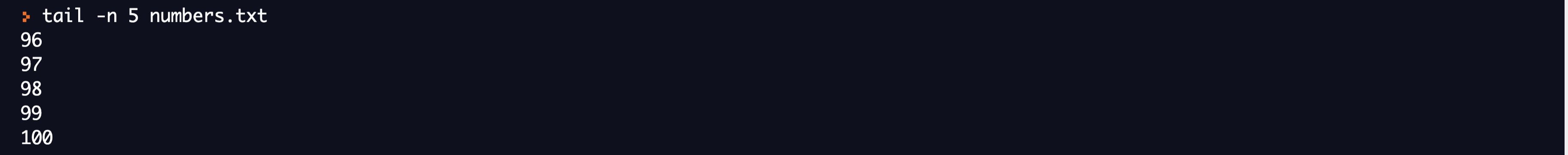 By default, the tail command will only display the last 10 lines. If we