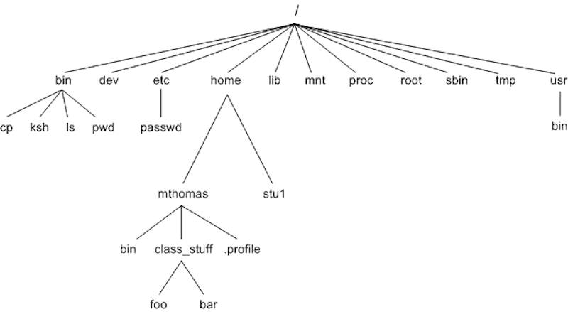 its highest-level directory called root (denoted by /). Directories