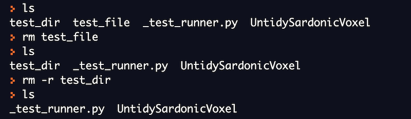 delete the file and directory we created using touch and mkdir command