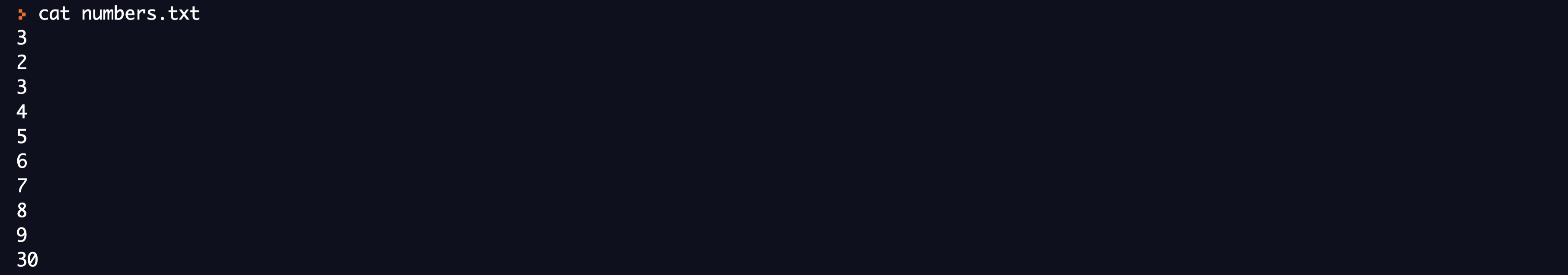 We will create a new file called numbers.txt and insert numbers from 1