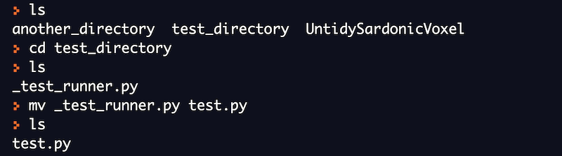 mv command to rename the _test_runner.py file to test.py.