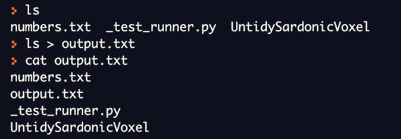output of ls command to output.txt file.