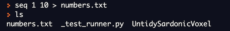 Do not worry about the above command now. It's an advanced command which is used to generate numbers. We have then used a redirection operator to push these numbers to the file. We will be discussing I/O redirection in the later sections.